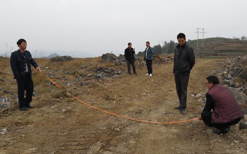 图为验收工作组成员正在测量毛岭村联户路长度.