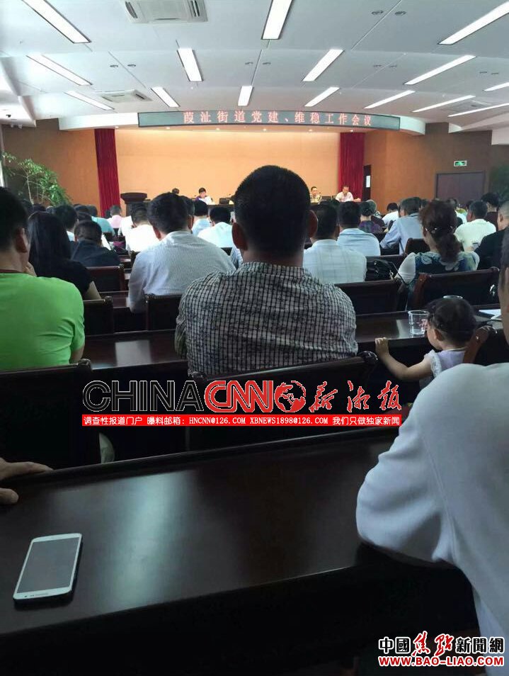 6月26日下午,葭沚街道办事处召开党建、维稳工作会议,一名小女孩与100多名成年人参会。
