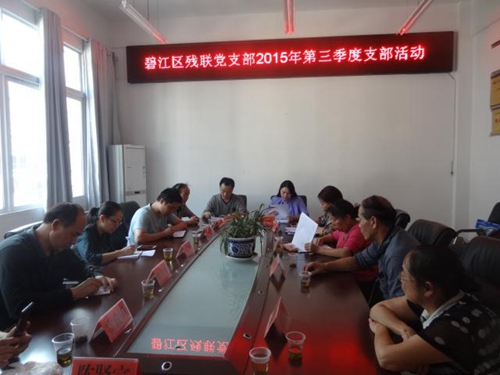 图为:区残联党支部组织全体党员学习现场