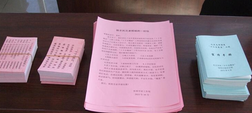 三是创新宣讲载体。为使“十个全覆盖”工程真正家喻户晓、深入人心,工作组通过多种渠道广泛开展内容丰富、形式多样的“十个全覆盖”工程宣传活动。多次组 织召开村民大会、党员大会进行集中宣讲;制作宣传牌、宣传橱窗、宣传条幅扩大影响;在文化广场人员密集时段通过广播喇叭反复播放;由于农忙季节,部分村民 秋收,工作组来到田间地头,把政策带到田野上;利用早、中、晚时段,与百姓拉家常、聊工程;反复深入村民家中,除面对面逐门逐户进行走访宣传外,还发放宣 传册、明白纸、联系卡等宣传资料以及《致广大农民兄弟姐妹的一封信》,用通俗易懂的语言、简单明了的表述,言真意切地向村民讲明相关政策、工作任务、求助 渠道等,让老百姓充分了解“十个全覆盖”内容,做到户户清楚,以求赢得群众的支持和理解,提高群众对“十个全覆盖”内容的知晓率,切实做到走访宣传不漏 户、不漏人,真正使“十个全覆盖”家喻户晓,深入人心。在宣讲内容上从群众的“所思、所想、所盼”出发,充分发挥解疑释惑、引领思想的作用,努力做到深入 浅出、入脑入心。