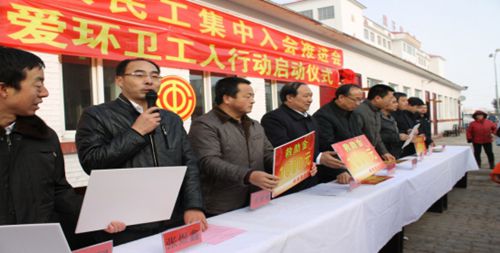 在活动中,县总工会对自愿加入工会的环卫职工组织举行了入会宣誓仪式,并颁发了会员证书。