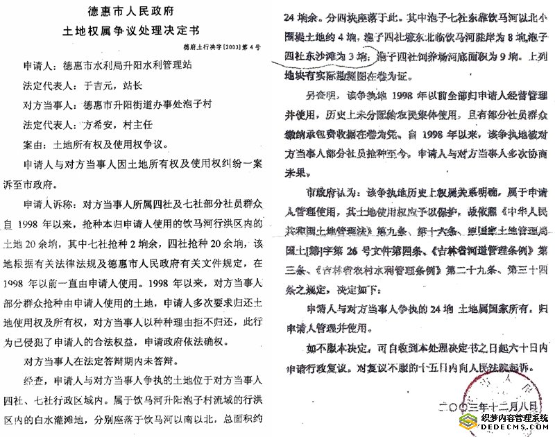 德惠法院依据政府文件判决村书记赔偿