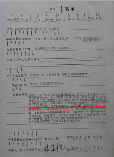在法庭上,原告方还再三强调:中国视点网介绍信和李广军的所有证件都是警方在到宾馆搜查时,从李的包里找到的,有卷宗里警方自己做的“检查笔录”为证,苏 风宁的证言也只是称“他们向我出示了相关证件”,却并没有提到介绍信问题,我们的介绍信也从来没有向任何人出示过,只是事先填写好一张准备用于去宣传部联 系业务之用,还没有拿出来使用,怎么能认定我们使用了呢?又怎么能据此给我们定罪?即使李广军的证件和中国视点网的介绍信是假的,没有拿出来使用,就能说 其“使用”了并依此定罪吗?况且,至今被告也不能证明这份介绍信就是伪造、变造的。新右旗警方以不能证明是否虚假、也为向任何人出示过的介绍信给原告“定 罪”,这不是天大的笑话吗?