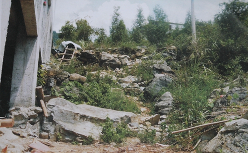 上图:谢成素侵占朱正菊土地新修的房屋右边是一壁天生老石壁,根本就没有路