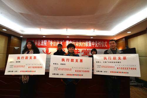 2017年1月17日下午15时,江西省上饶市广丰区人民法院在该院六楼,举行“冬日融冰”集中行动执行款集中兑付,来自全市32位申请人,将获得1100多万元执行款。