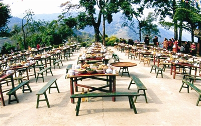 云南“杀猪饭”,多在每年农历的腊月操办。这是一个“蹭饭”的季节,也是春节前最喜庆的时节。每到岁末年尾,各个县区村村寨寨的群众纷纷开始张罗着选个好日子宰年猪。摆下丰盛的宴席,邀请亲朋好友来到自家亮堂堂的小院里,热热闹闹地吃上一顿丰盛的杀猪饭,充满辞旧迎新的年味。