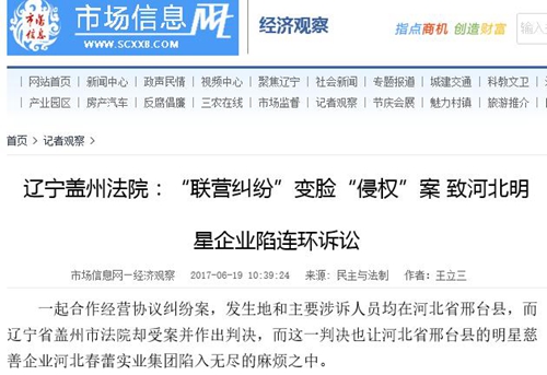 一起合作经营协议纠纷案,发生地和主要涉诉人员均在河北省邢台县,而辽宁省盖州市法院却受案并作出判决,而这一判决也让河北省邢台县的明星慈善企业河北春蕾实业集团陷入无尽的麻烦之中。