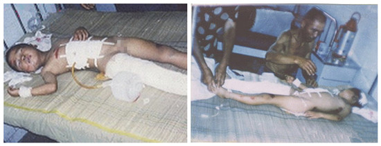 邢望力之子邢露露被撞致肝破裂、右腿骨折处于昏迷状态(摄于2002年7月息县人民医院)