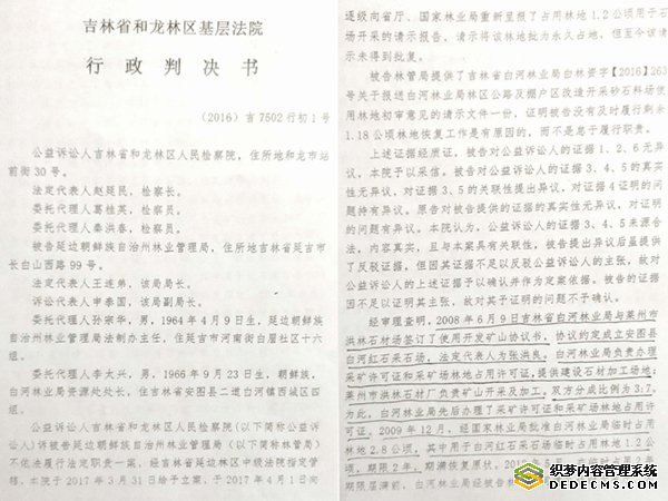 据吉林省和龙林区基层法院(2016)吉7502行初1号行政判决书记载: