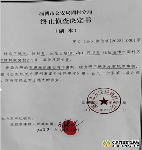 调查中,记者首先找到受害人了解情况。受害人王长武、张启祖、孟祥刚、尹杰、樊建强分别向记者递交了被骗的相关证据,并介绍了被骗前后所发生的情况:他们是在2017年底至2019年6月期间,通过别人介绍先后认识的王德先,王德先诈骗他们的过程也是一样的,都是谎称他与山东五洲国际商业运营有限公司有特殊关系,可以享受特殊政策购买“山东五洲国际家居博览城”住宅与临街商铺,他本人在五洲国际项目中持有10%的股份,并出示了他入股投资山东五洲国际商业运营有限公司10%股份的200万元收据。王德先承诺以每平方米低于实际售价50%的价格,卖给他们沿街商铺与住宅,并向他们出具盖有山东五洲国际商业运营有限公司公章的“特殊政策购房决定书”,且再三保证就算购买不上房屋,购房款保证不会有任何损失。在王德先编造的谎言诓骗下,几个人先后把自己多年的积蓄及向亲朋好友借的购房款,分别打进了王德先指定的账户。付款后,王德先分别给他们出具了一份上面加盖了“山东五洲国际商业运营有限公司”及“山东煜泰房地产开发有限公司”公章的《特殊政策购房决定书》,并开具了加盖“五洲国际商业运营有限公司财务专用章”的“工商服务业统一收款收据”。半年以后,他们多次向王德先询问何时交房,王德先总是答复很快就能交房。一直拖到2020年11月底,他们请律师到山东五洲国际商业运营有限公司了解情况,才知道他们的购房款并没有交给这个公司,这一切的说法都是王德先编造的谎言,且公司的公章、财务专用章都是假的。他们再次追问王德先时,王德先承认他所收的购房款未交给山东五洲国际商业运营有限公司,也承认了所盖的公司公章、财务专用章都是假的。他们多次向其催要购房款,王德先除了退还王长武20万元、孟祥刚10万元、樊建强32万元外,其余购房款被诈骗团伙私分。至此,以王德先为首的诈骗团伙即不给房子也不退房款。无奈之下,他们5人到淄博市周村区公安分局经侦大队,举报王德先、石玉第、王可可、王丽、张永会诈骗团伙编造谎言,制作虚假购房决定书,违法私刻公章、财务专用章,诈骗购房款的犯罪事实。周村区公安分局经侦大队随即将犯罪嫌疑人王德先、石玉第立案侦查。但办案警官陈淼很快将诈骗团伙首犯王德先终止侦查,声称王德先没有犯罪事实,并给王德先出具了《终止侦察决定书》。经过受害人多次举报反映,周村区公安局经侦大队通过更换办案警官的办法,终于又将王德先进行立案调查,立案决定书却始终不给受害人,并且还立即给王德先办理了取保候审,诈骗团伙的账户也没有冻结,不冻结账户的理由竟然是:无法证明犯罪嫌疑人账户中的钱款就是诈骗受害者的钱。受害人张启祖有一次去向王德先追债,王德先说:“他们公安要是把我逼急眼了,我全部把他们都掀出来。”王德先作为诈骗团伙的首犯,之所以说话这么有底气,而且很快就能被无罪释放,完全是因为办案警官的包庇所致,有警察当保护伞才能这样有恃无恐。如此现状却害惨了受害人,他们个个损失惨重,债台高筑,欲哭无泪。尤其是张启祖的大姨姐李元珍夫妇被骗的最惨,因为想买新房卖了自己原来住的老房子,还向别人借了一些钱,都被王德先骗走了,现在居无定所,只能到处流浪无家可归,还要想办法还债。由于经济压力太大,李元珍的丈夫陈连梓得了精神病至今住院治疗。在社会主义法治国家里,竟然会发生如此惨剧?实在是令人悲愤交加、唏嘘不止。