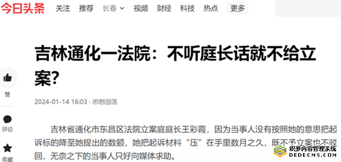 吉林省通化市东昌区法院立案庭庭长王彩霞,因为当事人没有按照她的意思把起诉标的降至她提出的数额,她把起诉材料“压”在手里数月之久,既不予立案也不驳回,无奈之下的当事人只好向媒体求助。