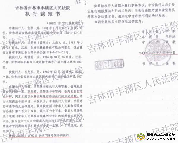 本站讯 自古以来,欠债还钱都是天经地义的事,不过江湖上还流行一句话“好钱要好要”。依据我国现行法律,法院对人进行司法拘留有明确的规定,不能连续采取司法拘留强制措施。而在吉林省吉林市,丰满区法院执行局一名叫做单军的执行法官,却对同一个人连续拘留,又不给出具任何法律文书。日前,被执行人之一苟雪莉找到媒体并提供大量录音和法律文书,她说:就此事,她已经向检察机关提出申请,请求检察机关对单军涉嫌滥用职权问题进行调查。