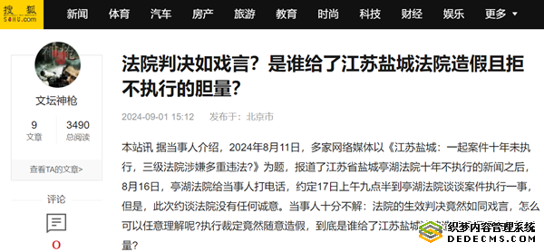本站讯 据当事人介绍,2024年8月11日,多家网络媒体以《江苏盐城:一起案件十年未执行,三级法院涉嫌多重违法?》为题,报道了江苏省盐城亭湖法院十年不执行的新闻之后,8月16日,亭湖法院给当事人打电话,约定17日上午九点半到亭湖法院谈谈案件执行一事,但是,此次约谈法院没有任何诚意。当事人十分不解:法院的生效判决竟然如同戏言,怎么可以任意理解呢?执行裁定竟然随意造假,到底是谁给了江苏盐城法院造假且拒不执行的胆量?