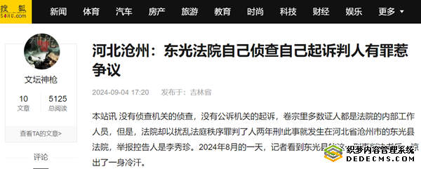 本站讯 没有侦查机关的侦查,没有公诉机关的起诉,卷宗里多数证人都是法院的内部工作人员,但是,法院却以扰乱法庭秩序罪判了人两年刑!此事就发生在河北省沧州市的东光县法院,举报控告人是李秀珍。2024年8月的一天,记者看到东光县的这一刑事判决书后,惊出了一身冷汗。