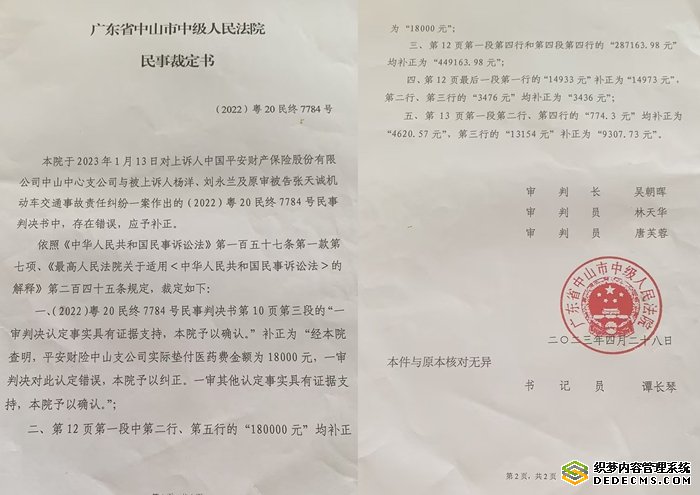 2024年4月,中山市中院对二审判决作出五项补正,将赔偿金额从28.7万增至44.9万。刘永兰质疑:“判决生效三个半月后补正,程序是否合法?若死刑文书可补正,司法权威何在?”