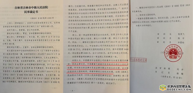 更令人匪夷所思的是,2019年吉林市中级法院曾作出(2019)吉民终1333号生效民事裁定书,依据同案同判原则,驳回宋文国的起诉并将案件移送公安机关。但时隔六年,昌邑区法院的肖鹤、王福振法官却作出了完全相反的判决,无视生效裁定确立的裁判标准。“同样的法院、同样的事实,仅仅因为审判人员不同,就出现‘双重标准’,这根本不是司法公正,而是枉法裁判!”中合拍卖总经理段爱国愤怒地表示。
