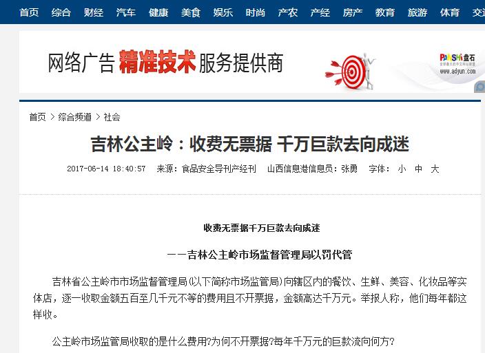 公主岭市场监管局收取的是什么费用?为何不开票据?每年千万元的巨款流向何方?