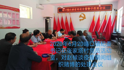 山西省方山县峪口镇张家塔村党支部委员赵侯谈,疫情期间(麻将桌上值班)组织聚众赌博,他这种不顾他人生命安危的不负责行为,在严重触犯法律的同时,严重影响干扰疫情防控大局。
