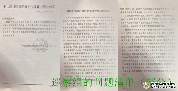 村民们反映:周村区北郊镇政府,为了加强各村党支部建设和村集体的管理工作,采取了政府人员包片包村对口管理的措施,北郊镇干部薛川被安排到白寨村兼任党支部书记。其在任职期间,对村里过去发生的问题,采取新官不理旧账的态度不闻不问,对现有的工作不讲原则随意处置,造成村里各项工作混乱不堪。2020年6月3日至8月31日,周村区区委第二巡察组对北郊镇白寨村党支部进行了巡查,在巡查中发现了诸多问题并印发了问题清单,责成白寨村党支部进行立即整改。但时至今日很多问题依然没有整改、不了了之。