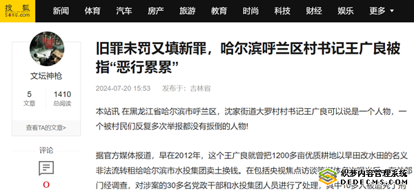 本站讯 在黑龙江省哈尔滨市呼兰区,沈家街道大罗村村书记王广良可以说是一个人物,一个被村民们反复多次举报都没有扳倒的人物!