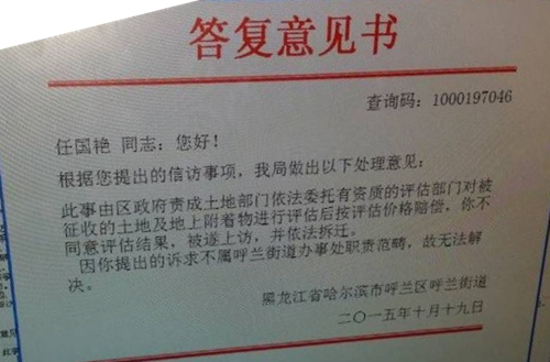 因征拆补偿问题未能达成一致,呼兰区征拆部门曾要求伟光村村委会以承包合同到期、要求委托人腾退土地为由提起民事诉讼,伟光村村委会召开会议后,一致决定不起诉。