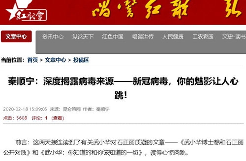 以前读的文章还多半是猜测,是外行写的,是逻辑推理,尽管有今年1月21日三位科学家在《中国科学:生命科学》英文版在线发表的论文在专业领域提供了可靠的质疑数据,同时还有一位印度学者于1月31日发表在bioRxiv上的有关新型冠状病毒来源于实验室的科学论文进一步进行佐证,但毕竟还是一种没有铁的事实为依据的猜测。