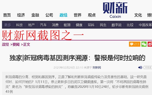 财新网文章《独家|新冠病毒基因测序溯源:警报是何时拉响的》链接:http://china.caixin.com/2020-02-26/101520972.html