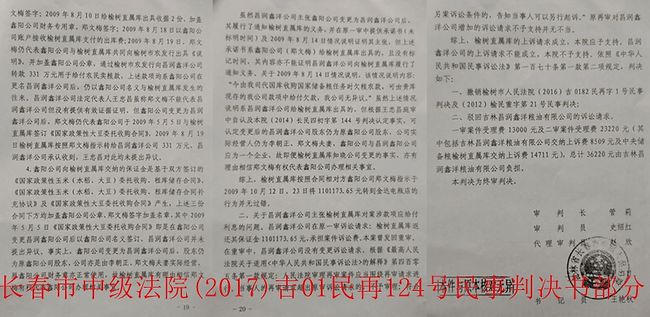 判决书显示,长春中级法院的主审法官是史绍红。(2017)吉01民再124号民事判决书做出之后,王忠昌、傅维鑫就向有关部门发出实名举报,二人在给长春市中级法院院长程凤义的实名举报信中说: