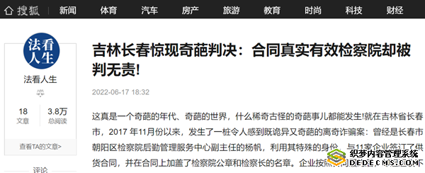 本站讯 这真是一个奇葩的年代、奇葩的世界,什么稀奇古怪的奇葩事儿都能发生!就在吉林省长春市,2017 年11月份以来,发生了一桩令人感到既诡异又奇葩的离奇诈骗案:曾经是长春市朝阳区检察院后勤管理服务中心副主任的杨帆,利用其特殊的身份,与11家企业签订了供货合同,并在合同上加盖了检察院公章和检察长的名章。企业按照合同履约后,却迟迟收不到货款,他们到检察院追讨货款,却被告知:与11家企业签订合同是杨帆的个人行为。随后,杨帆以诈骗罪被判刑入狱。11家企业将检察院起诉至长春市二道区法院,没想到这个法院竟然做出了令他们感到最最奇葩的判决:合同真实有效,合同和验收单上的公章都是真实的,检察院也收到了某公司提供的货并正在使用,但是法院却判决原告要求检察院支付本金和利息没有法律和事实依据,也就是说检察院不需要承担任何支付和赔偿责任!该判决书一经宣判,立即在北国春城长春引发了巨大争议。