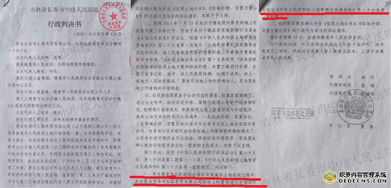 长春中院(2014)长民一终392号民事判决,确认王志刚与米沙子镇政府签订的投资协议书合法有效;该院(2015)长行初字129号行政判决,直接认定德惠市政府拆除农贸市场的行为违法。吉林省高级法院(2016)吉行终550号行政裁定书、长春中院(2017)吉01初61号行政判决书,通过司法确认明确王志刚是涉案土地的合法使用权人和地上附着物所有权人。