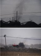 道路两侧的煤栈大多没有任何防尘措施,只要煤栈有车辆在工作着,就犹如被点燃的“火焰山”,烟雾缭绕。
