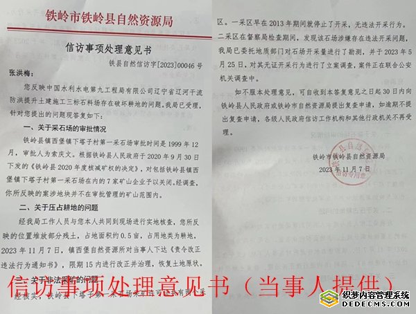 张景林等人认为,张忠海是挂靠在第九工程局的名下,从事非法采矿活动的,严重破坏了耕地,于是不断向有关部门举报。铁岭县自然资源局经过调查,做出了《信访事项处理意见书》(铁县自然信访字[2023]00046号)。该意见书称: