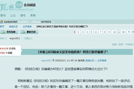 [转帖]武汉肺炎又是美帝捣的鬼?科技日报总编怒了!