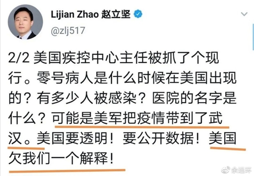 因为,上升到了中美之间的“甩锅较量”。美国指摘中国掩盖疫情,WJ部严正“希望美个别官员集中精力应对疫情,而不是向中国‘甩锅’”。3月13日,WJ部发言人在推特上连推5条推文,认为“可能是美军把疫情带到了武汉,美国欠我们一个解释”。