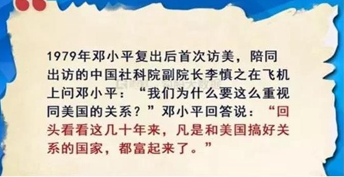 对于中美关系的重要性,历代中国领导人都讲的很清楚,合作是有利于中国的发展。
