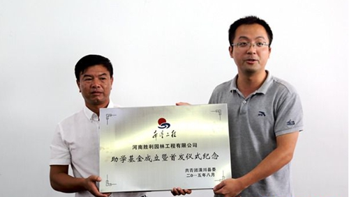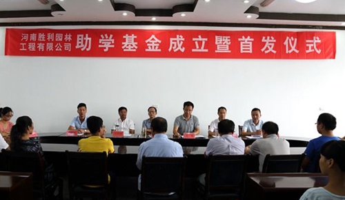 本站讯 8月25日下午,河南胜利园林工程有限公司助学基金成立暨首发仪式在潢川县委一楼会议室举行。县花木办、团县委、老城街道办事处负责人,河南胜利园林工程有限公司董事长简焰河、总经理简新春及34名受助大学生和部分家长代表参加了仪式。
