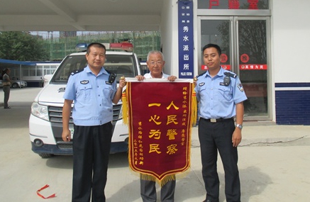 9月10日上午,78岁的胡功新老人带着锦旗来到秀水派出所,紧紧握住民警的手,激动地说:“谢谢警察同志,感谢你们帮助我找回走失的老伴!”(李健 王继强)
