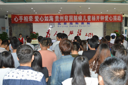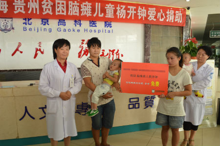 涓涓细流汇大海,小小爱心筑长城。9月21日,由公益救助机构“带路基金”管理委员会主办,北京高科医院协办的心手相牵、爱心如海——贵州贫困脑瘫儿童杨 开钟爱心捐助仪式在京举行。“带路基金”爱心企业和社会各界爱心人士、北京高科医院医护人员、“带路基金”志愿者等上百人参加了捐助活动。人民网、光明日 报、中国青年报、人民政协报、中国产经新闻、公益慈善报、中华志愿者杂志等二十余家主流媒体对活动进行了报道。