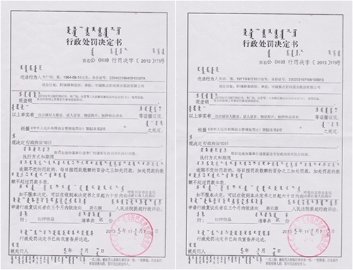 被释放后,他们曾经申请行政复议,呼伦贝尔市公安局并没有改变新右旗警方的行政处罚决定,不过却在复议书中误导二人,称不服此复议,可以到新右旗人民法院 提起行政诉讼(应该告知也可以在户口所在地或常住地起诉)。但是,该复议书中提到的关键证据(中警鉴字)[2013]4143号《检验报告》却没有给二人 看过,甚至在法院开庭时也拒不出示,一直到现在也不出示!