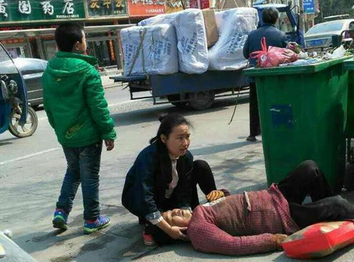 3月9日下午2点左右,李建丽像平时一样送孩子上学,一路上和孩子欢声笑语,走到潢川县宁西路人民银行附近,发现有一位老人躺在地上,出于好奇李建丽把电瓶车停在路边,走上前看看老人怎么回事,发现老人口吐白沫,一动不动的躺着,她急忙蹲下来用手试了一下,发现老人已经没有呼吸,呼喊老人也没有任何反映,李建丽赶紧拿出手机拨打了110、120,随后她把老人的呕吐秽物擦干净。因为害怕老太太是脑溢血,没敢动老太太的头,她就半跪着用手使劲掐老人的人中,终于老人有了微弱的反映。很快120急救车赶到了,并对老人进行了紧急施救,终于老人的眼睛微微睁开了,医生说:“幸亏抢救及时,不然后果不堪设想。”