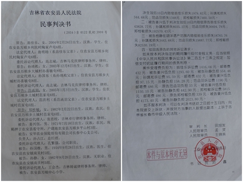 本站讯 一年前的7月6日,在吉林省农安县境内的农安至万顺路段,发生一起惨烈的交通肇事案,1名司机当场死亡,4名乘员受伤!事发一年后,2017年8月1日,记者再次来到农安县采访此事时得知:这起由于补课发生的车祸受害人仍未得到任何赔偿!相反,因为他们去县教育局上访,还遭到警方的传唤和拘留!,