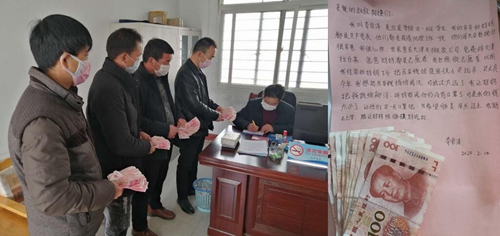 2月10日,河南省方城县红星学校四年级8岁的学生李宏泽用稚嫩的小手给坚守在家乡方城县柳河镇疫情防控一线的党员干部写了一封信,并捐献自己春节期间1000元的压岁钱。