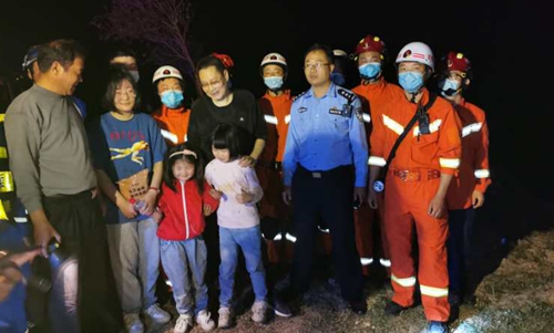 由于被困人员的登山路线为野线,山路崎岖、荆棘密布,给救援队员的行进速度造成了一定的阻碍,经过队员们不懈努力,两个小时后,终于在大石峡寨的半山腰处发现了4名被困人员,其中1名中年男性50岁左右,3名女孩中最小的只有5岁。当时他们疲惫不堪,手机电量也已耗尽,没有照明工具,缺少食物和水,由于山中夜间气温偏低,被困人员身体和心理面临很大挑战,救援人员及时送上饮用水和单兵干粮为他们补充体力。经检查,他们的身体状况良好,都可以正常行走。