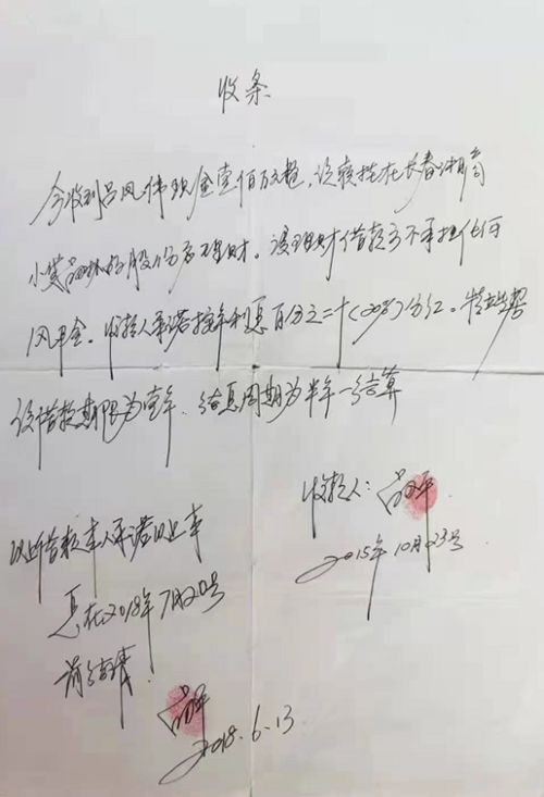 2018年6月13日,吕小平再次向吕某某夫妇承诺在2018年7月20日还款,并在原有的收款收条上亲笔签上“以上借款本人承诺本息在2018年7月20日前结清”,落款名字为吕小平。