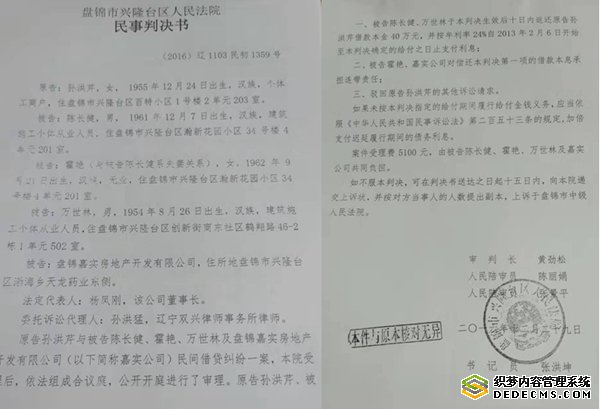 几名被告拒不偿还借款,却在法庭上极力辩解。据判决书记载:在法庭上,被告霍艳承认向原告借款以及用嘉实公司抵债的房子抵押给原告的事实。霍艳当庭辩称,当时向原告借的是40万元现金,约定的六分利,但前提是借条必须写64万,计算了十个月的利息,才能给我们现金。当时直接把嘉实的房子给原告了,还扣了二个月的利息4.8万元,原告直接给我们现金35.2万元。我们的工程款已经让嘉实公司扣完了,房子应该给孙洪芹,我们不再承担责任。