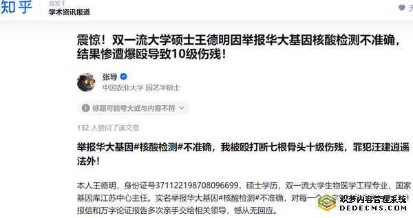 震惊!双一流大学硕士王德明因举报华大基因核酸检测不准确,结果惨遭爆殴导致10级伤残!