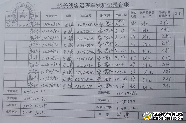 上图:黄永红在重庆万州汽车总公司上班时客运发班记录台帐