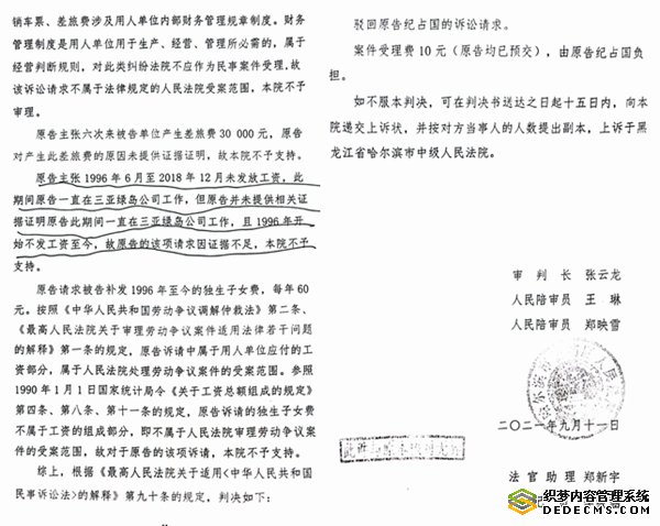 这个被律师们认为公正的裁定书称:本院认为,一审判决基本事实认定不清,且遗漏诉讼主体。首先,纪占国虽被省粮油公司派到海南省三亚市绿岛贸易发展公司(以下简称三亚绿岛公司)工作,但该公司并未与其签订书面劳动合同,其人事档案也一直由省粮油公司保存。一审法院对纪占国在三亚绿岛公司工作期间的工资发放情况,以及省粮油公司与三亚绿岛公司在用工问题上是否存在混同未予查清;其次,三亚绿岛公司虽系独立的法人单位,但该公司系省粮油公司投资设立,二者存在管理与被管理的关联关系,且省粮油公司又负有“应对三亚绿岛公司积极组织清算”的职责;第三,三亚绿岛公司系实际的用人单位,其虽已被吊销营业执照,但其民事主体资格尚存。一审判决未依法将三亚绿岛公司追加为本案当事人参加诉讼,属于遗漏诉讼主体。依照《中华人民共和国民事诉讼法》第一百七十条第一款第三项、第四项规定,裁定如下:一、撤销黑龙江省哈尔滨市香坊区人民法院(2019)黑0110民初150号民事判决;二、本案发回黑龙江省哈尔滨市香坊区人民法院重审。