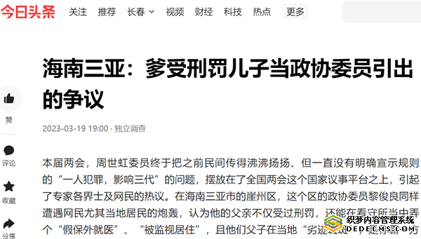 关于今年两会周世虹委员的这个提案,其主要是指“一人犯罪,影响三代”的问题,他的这个提案,主要针对不该影响“考公”,而未及其它,即使这样,也引起了轩然大波,有部分人赞成他的观点,但更多的人是持反对态度的。而爹受刑罚,儿子能不能当政协委员之议论,大多来自海南的三亚,或者更多的来自三亚的崖州区,反对方认为,国家的这个规定,是遏制犯罪的最有效方法,当一个人有了犯罪的愿望或动机时,想想自己的孩子们,因孩子是任何人的软肋。所以,不管是考公务员,还是参军等一些行业,一定要有这个限制,至于黎俊良政协委员这个身份,更应该参照这个规定来执行,因为政协委员是一个“政治身份”,对有这个身份人的考核,要比“考公”和参军更严格才对。“上梁不正下梁歪”的古训是有绝对道理的。