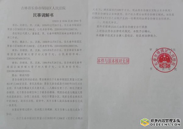 据孙继宝夫妇介绍,孙继宝因继承官司曾经到绿园区法院起诉,该院受理后其下辖的合心法庭组织双方进行了调解,并于2023年4月7日达成民事调解书(【2022】吉0106民初3944号),双方当事人自愿达成如下协议:位于长春市绿园区聚富小区38栋3单元306室(现登记在魏淑文名下、建筑面积约109平方米,现由原告孙继宝实际占有并使用)归原告孙继宝占有和使用,待产权办理后由原告孙继宝继承,该房屋自2023年4月7日之后所产生的一切费用均由原告孙继宝自行承担。二、其他无争议。案件受理费2525元由原告孙继宝自行承担。但因拆迁父亲孙某某得到的130万元补偿款并未分割,孙继宝遂再次起诉要求法院调取银行流水,并对这部分财产在三兄弟间进行分割。刘韦廷法官则认为,上次达成调解协议时,孙继宝已经放弃了对130万元存款的分割权,但孙继宝夫妇认为其放弃的是案涉的13万元其他费用,调解达成的协议中并没有其放弃130万元补偿款继承权的内容。于是,25日上午,孙继宝夫妇一进到刘韦廷法官的办公室,双方就此事就发生了争执。孙继宝夫妇提供的录音文件显示:孙继宝进到刘韦廷办公室后就说130万元并没有分割,法官刘韦廷则坚持说孙已经放弃,孙继宝的妻子周海霞见状就上前和法官理论,并说:“我们多次要求你调取银行流水,你都不给调。”刘则命令周“别给我说这些了”,“你要这样说,你就给我出去”。周问:“干啥让我出去?”刘称:“你不是我的当事人,我当然不接待你了!”录音中随机有推搡的声音,周海霞则喊:“你打我干啥呀,现在报警!”一阵杂乱的声音后,法院一名女法官对周进行了解释和安慰......
